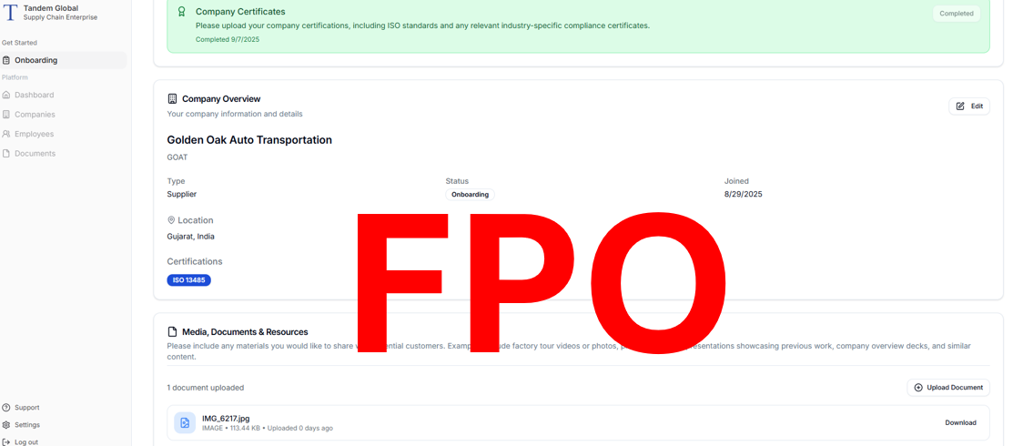 Whether you're building the next generation of vehicles or sourcing parts for today’s models, we make it easy to connect with trusted suppliers who get the job done right. Our comprehensive platform is designed to simplify your procurement process. From discovering new partners to tracking invoices and managing relationships, Tandem helps you stay organized, informed, and ahead of the curve.